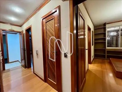 03 quartos amplos com armários, todos suítes e com piso em tábua corrida e